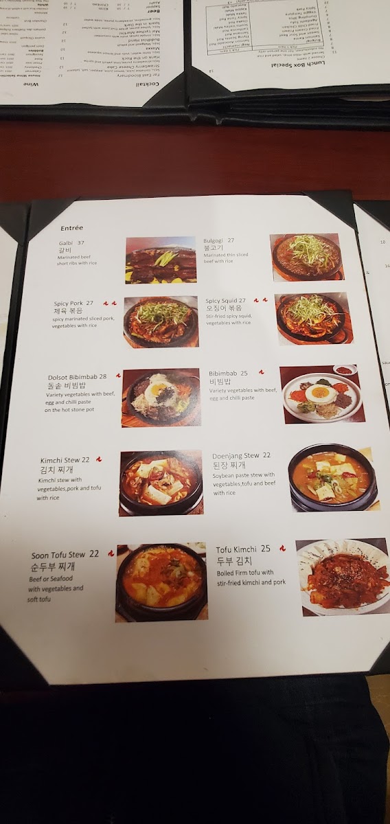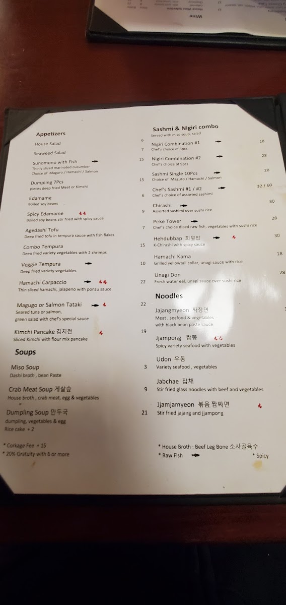 Highlights include hearty entrées like bibimbap and galbi short ribs, alongside comforting stews and flavorful fried chicken. Lighter starters such as agedashi tofu, veggie tempura, and various sashimi plates complement the menu well, making it easy to tailor your meal whether you’re craving something simple or more substantial.